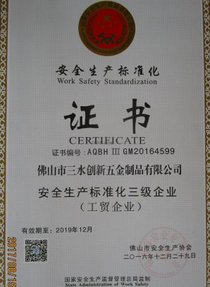 佛山市三水创新五金制品有限公司成立于2002年,坐 落于广东省佛山市三水区,主要生产的产品类型为建筑五金 制品,拥有的注册商标为“举创兴”,拥有设计师2人.打样工 艺师2人,专业质检人员2人,生产工人18人,生产设备共77台。专业从事五金配件车床加工、非标零件切削加工、以精密五金零 件、机械零件不锈钢机加工、不锈钢零件加工、机械配件 加工制造为主。生产的产品多种多样 真诚欢迎广大客户联系